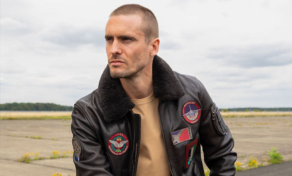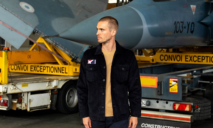 Blouson en Cuir Bleu Marine foncé Jet French Atlas - Redskins x Armée de l'Air et de l'Espace