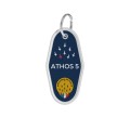 Ce porte-clés façon clés de motel est imprimé au recto de haut en bas comme suit :