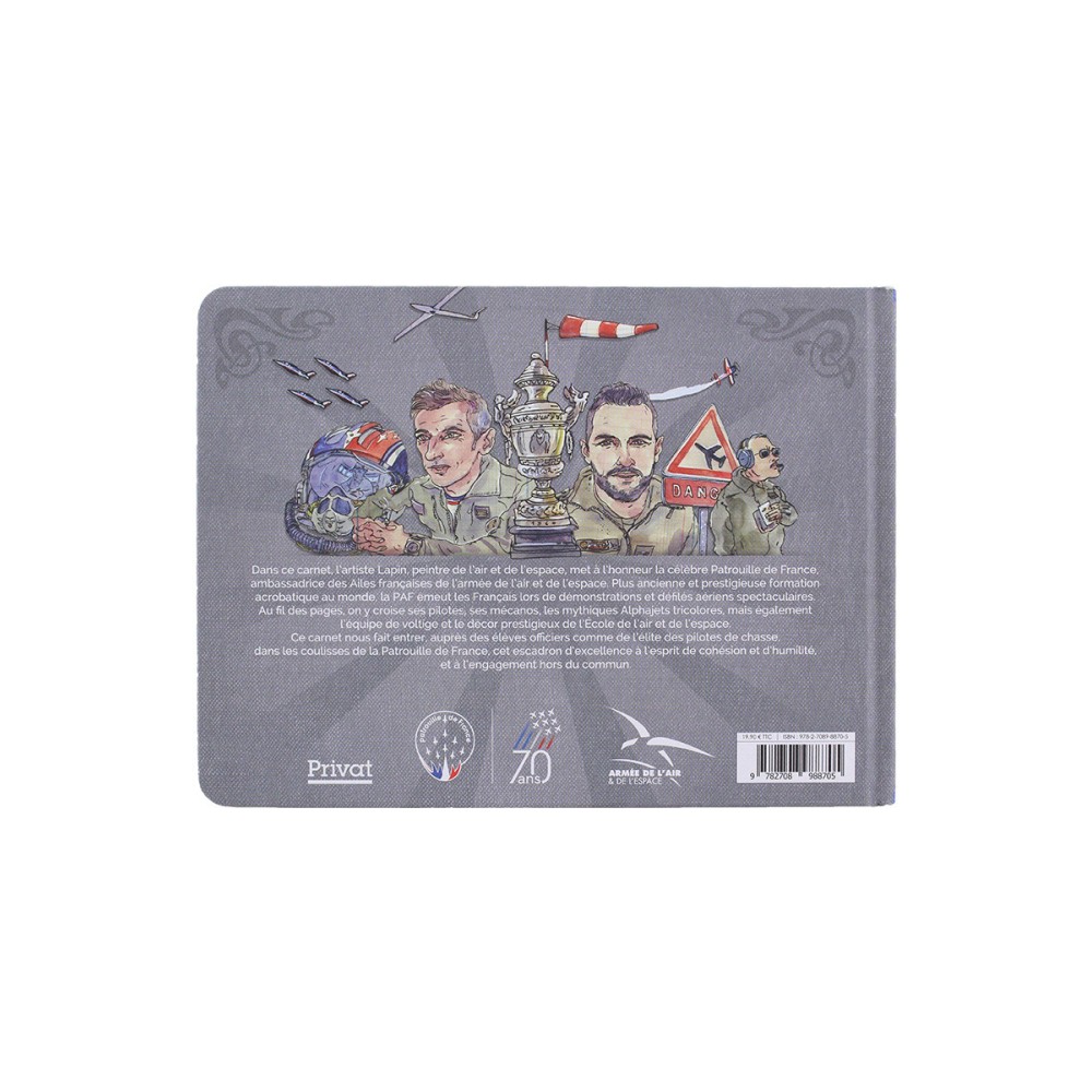 Dans ce carnet, l'artiste Lapin, peintre de l'air et de l'espace, met à l'honneur la célèbre Patrouille de France, ambassadrice des Ailes françaises de l'armée de l'Air et de l'Zspace. Plus ancienne et prestigieuse formation acrobatique au monde, la PAF émeut les Français lors de démonstrations et défilés aériens spectaculaires.