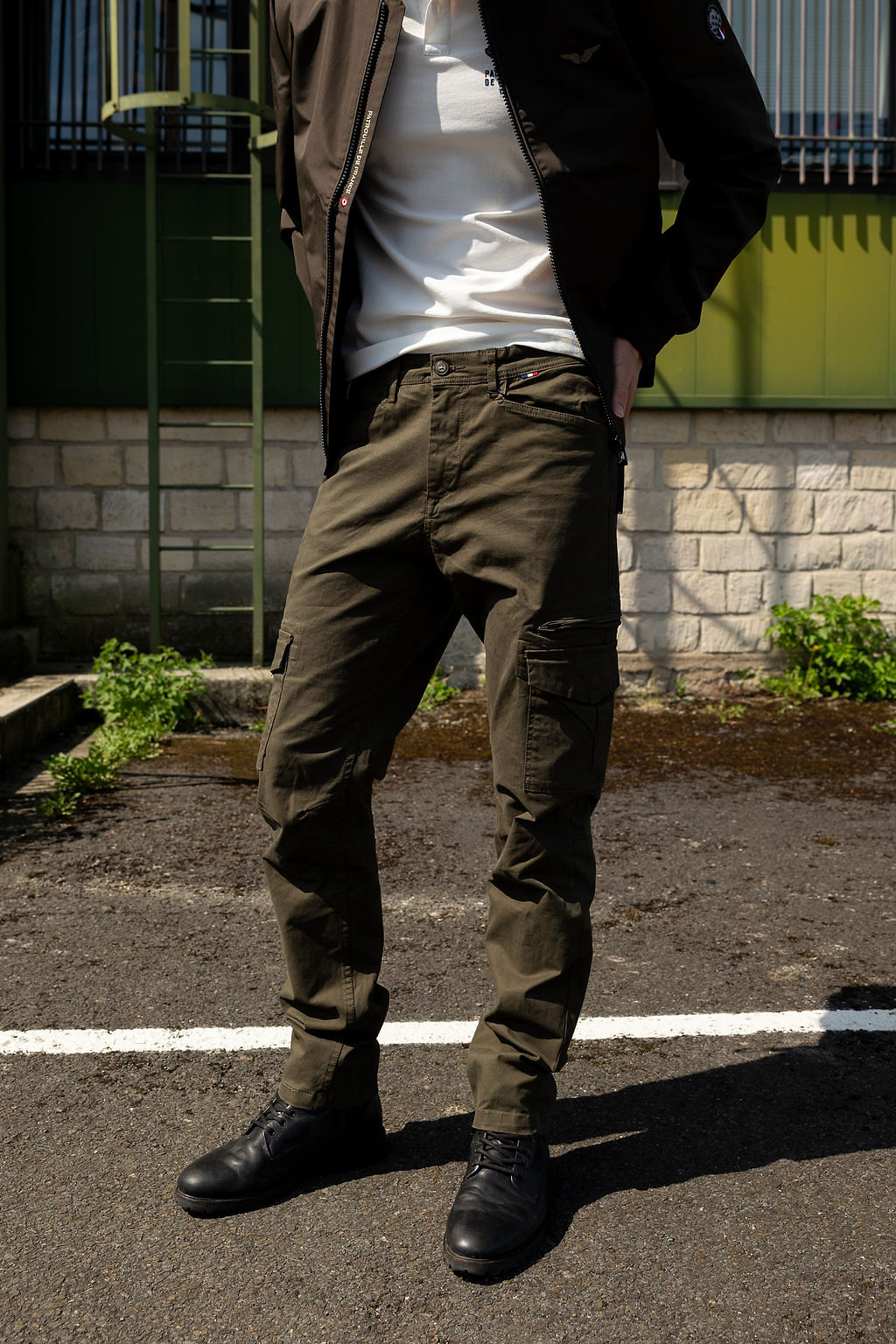 Pantalon LARGO VISION, fermeture avec 1 bouton d'attache et une fermeture éclair, 2 poches raglans latérales, 2 poches à rabats au niveau des cuisses, 1 poche zippée au dessus de la pocghe à rabat côté gauche, coupe droite, petit drapeau français attaché au dessus de la poche à raglan gauche.
