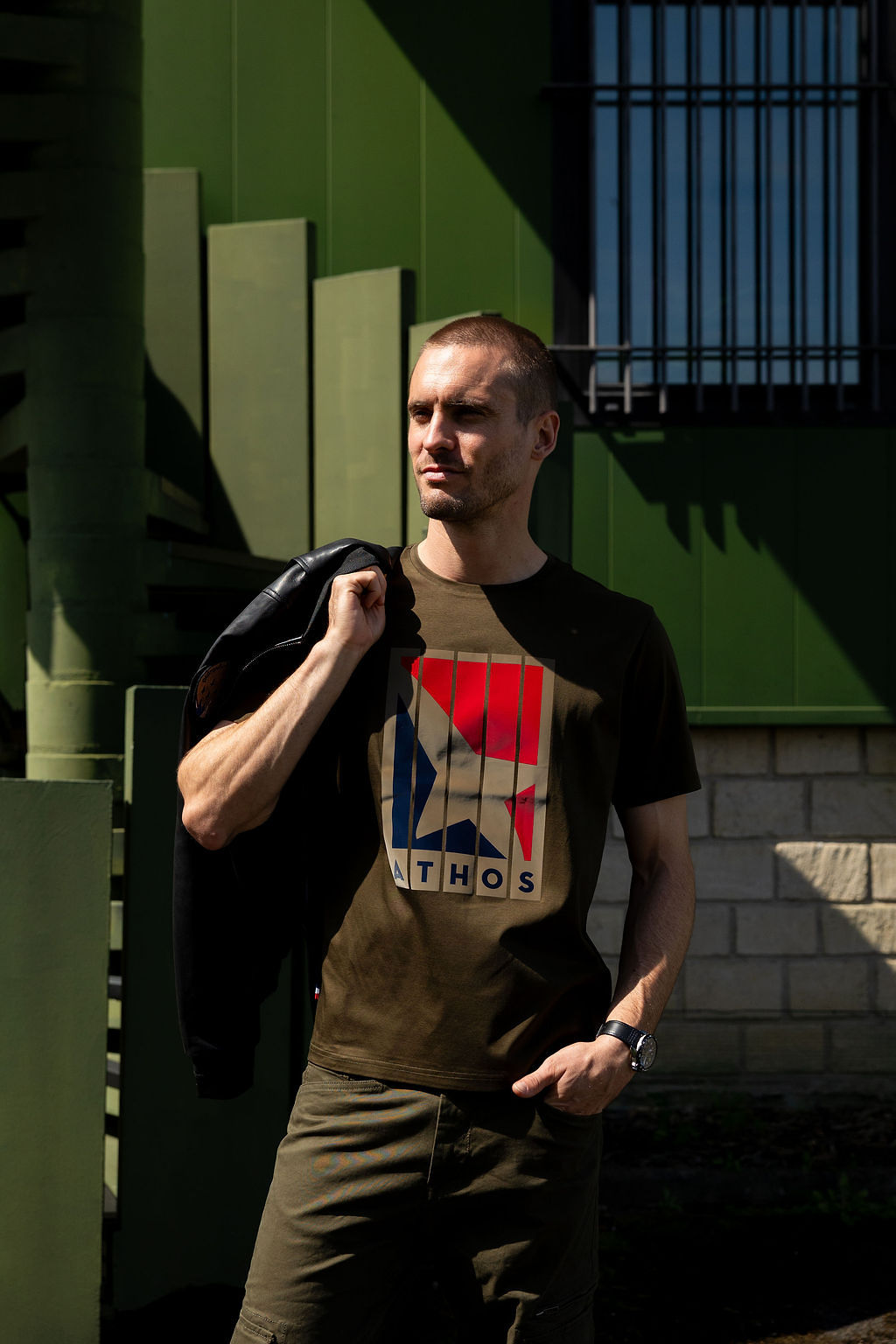 T-shirt ZOOM MERCERISE en coton mercerisé, col rond, logo ATHOS imprimé au centre du t-shirt, logo PATROUILLE DE FRANCE imprimé sur l'épaule droite, petit drapeau français attaché en bas à droite du polo.