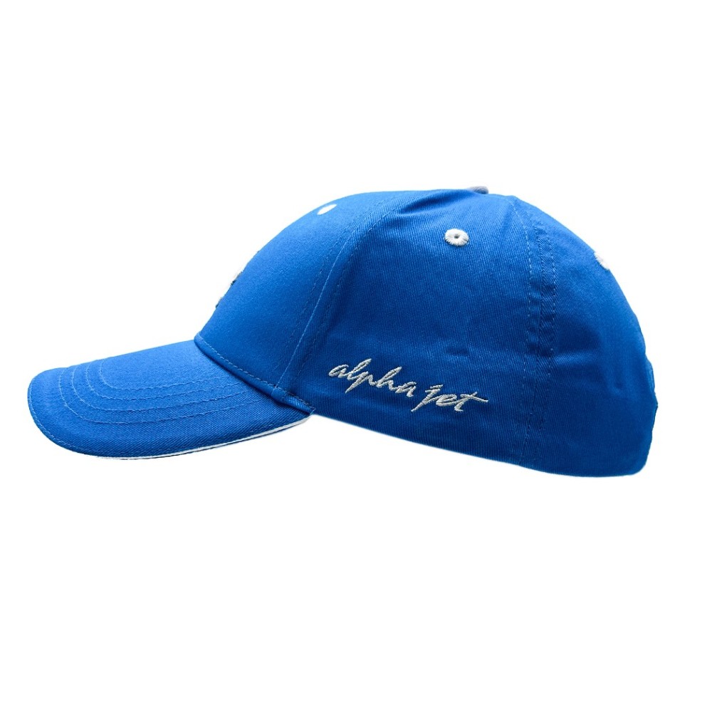 Ce modèle exclusif arbore le dessin brodé d'un Alpha-Jet et de la mention "Patrouille de France" ainsi que la signature "Depuis 1953".