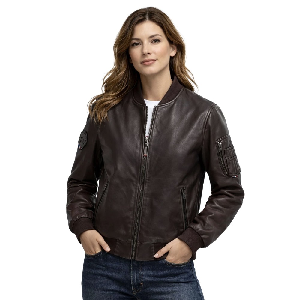 Son col montant doté d’une capuche repliable et ses détails signature — logo épaule et drapeau tricolore — soulignent une esthétique fonctionnelle inspirée de l’univers du vol.
