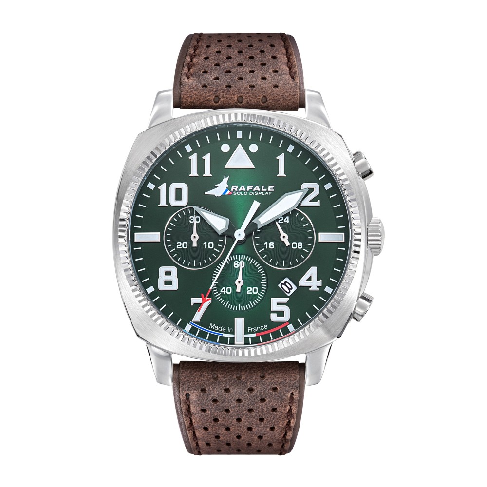 Cadran vert, bracelet cuir vachette marron