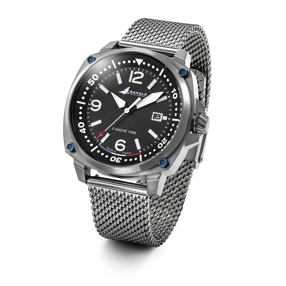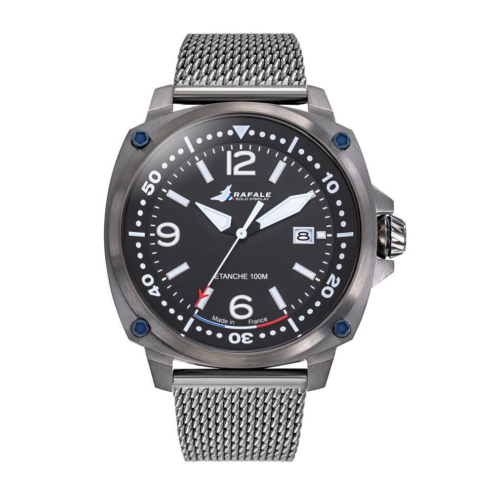 Cadran noir, bracelet en acier maille milanaise IP Gun