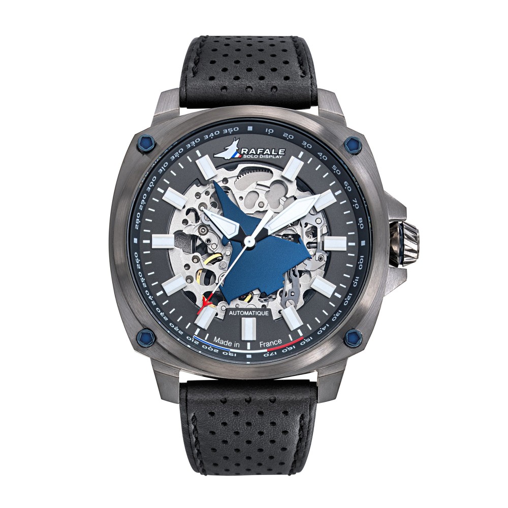 Cadran noir, bracelet cuir noir