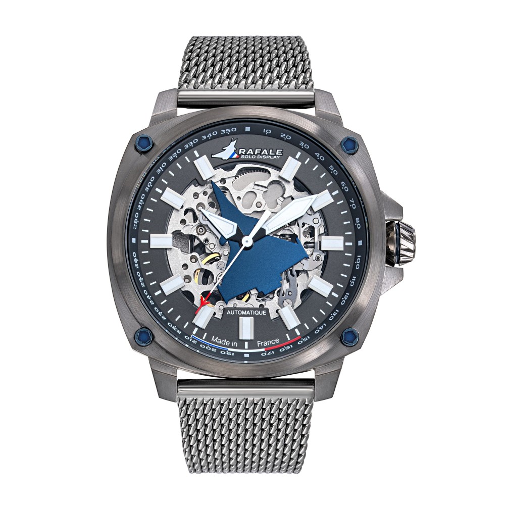 Montre automatique Rafale Solo Display Pilote Bleu - Cadran Acier et Bracelet Acier maille milanaise
